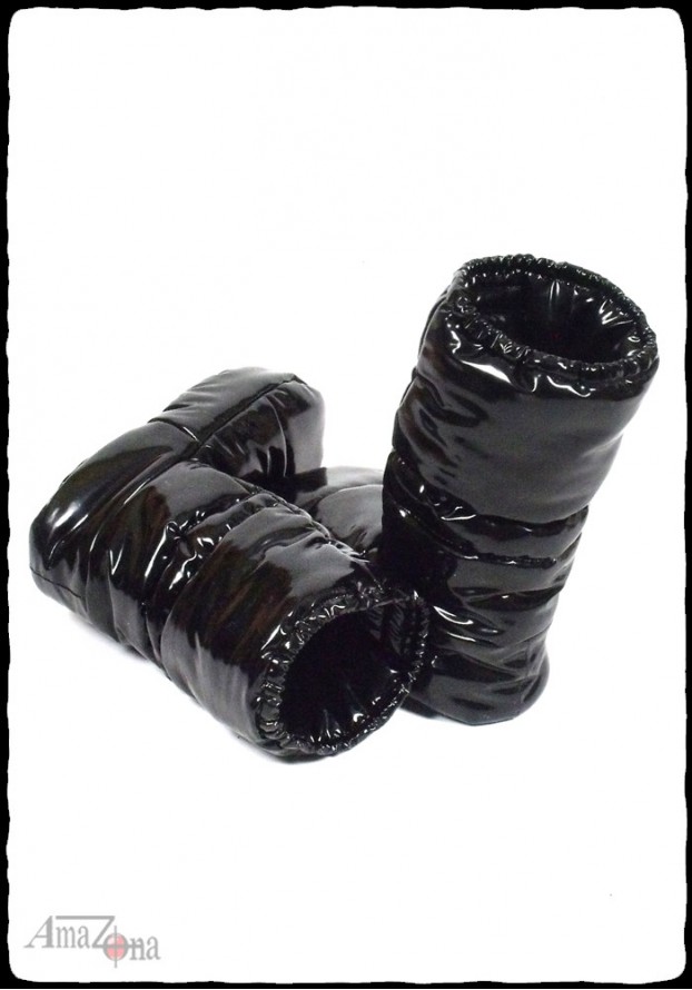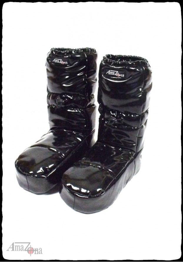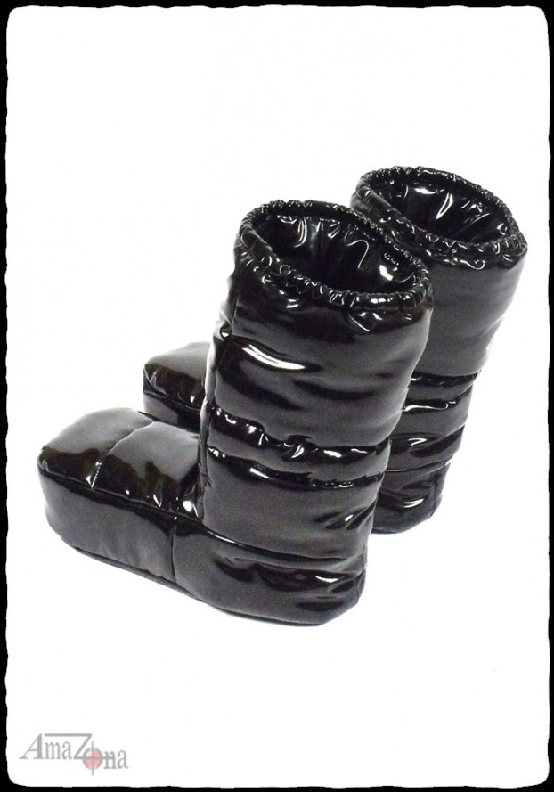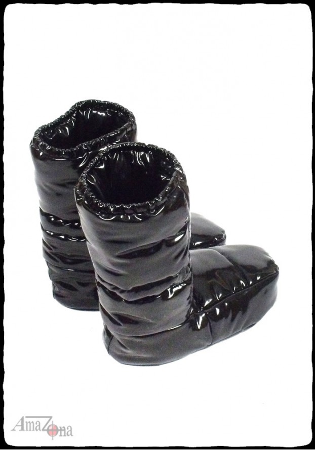 Like a warm puffy jacket for your feet, that it gives you our vinyl puffy boots as comfortable as socks with extra warm and lightweight quilting. Shiny vinyl inside and outside. The middle of the boots are adjustable with drawstrings. Easy to clean, comfortable to wear.