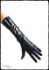 4-way stretch (elastic in all directions) vinyl gloves reaching almost up to the elbows.
