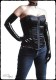 Long, 4-way stretch (elastic in all directions) vinyl opera lenght gloves reaching almost the top of the upper arm.