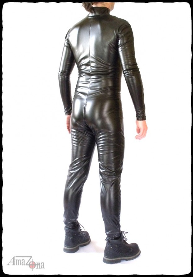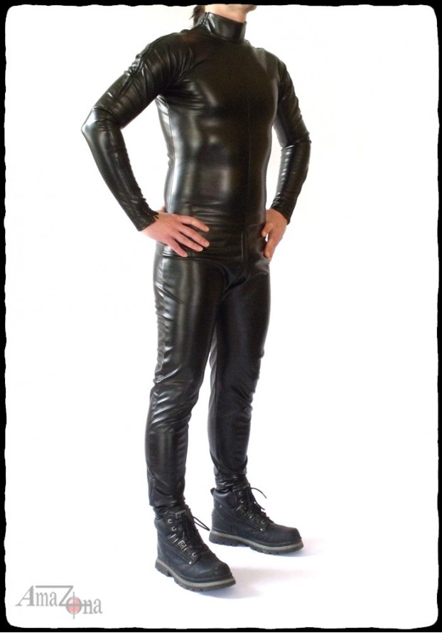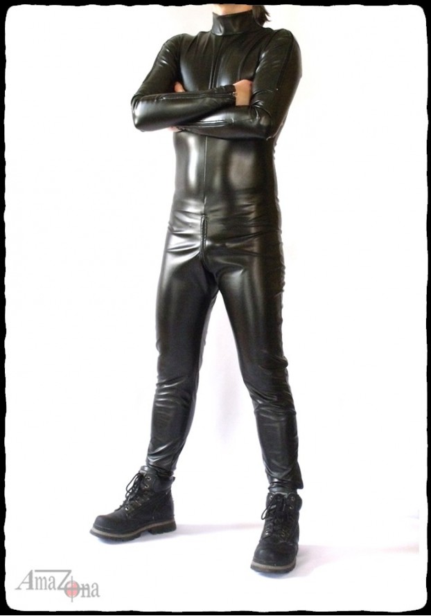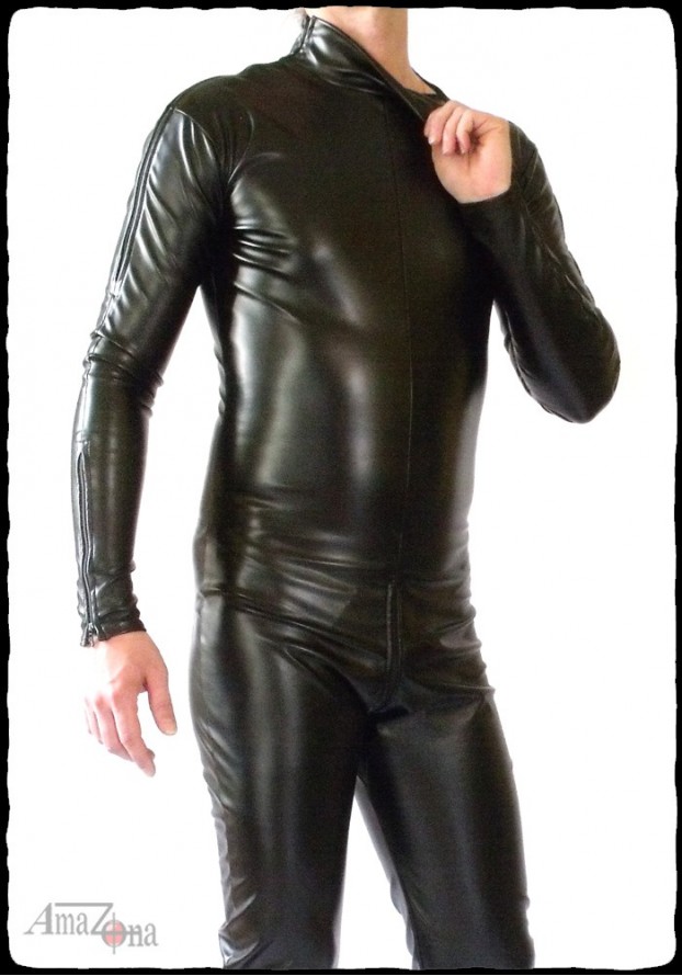 Stretch faux leather catsuit with shoulder zip on both side. It's perfect choice to a really cool catsuit.