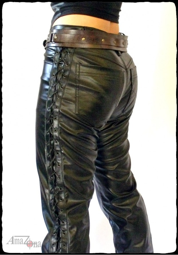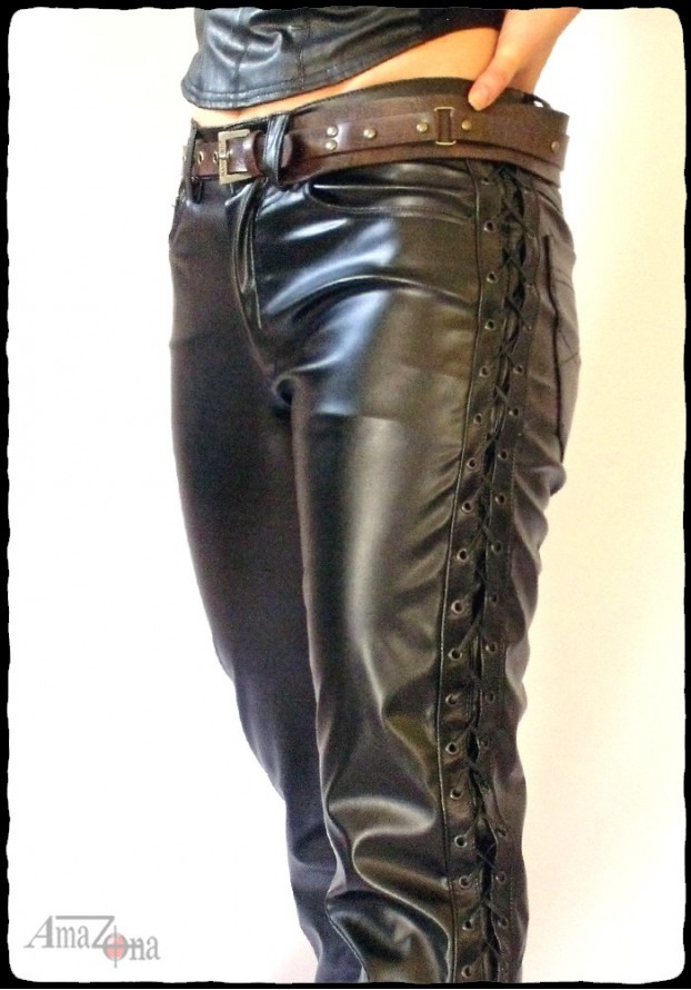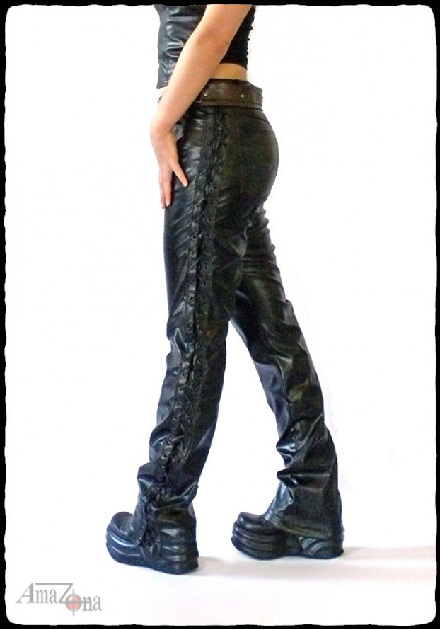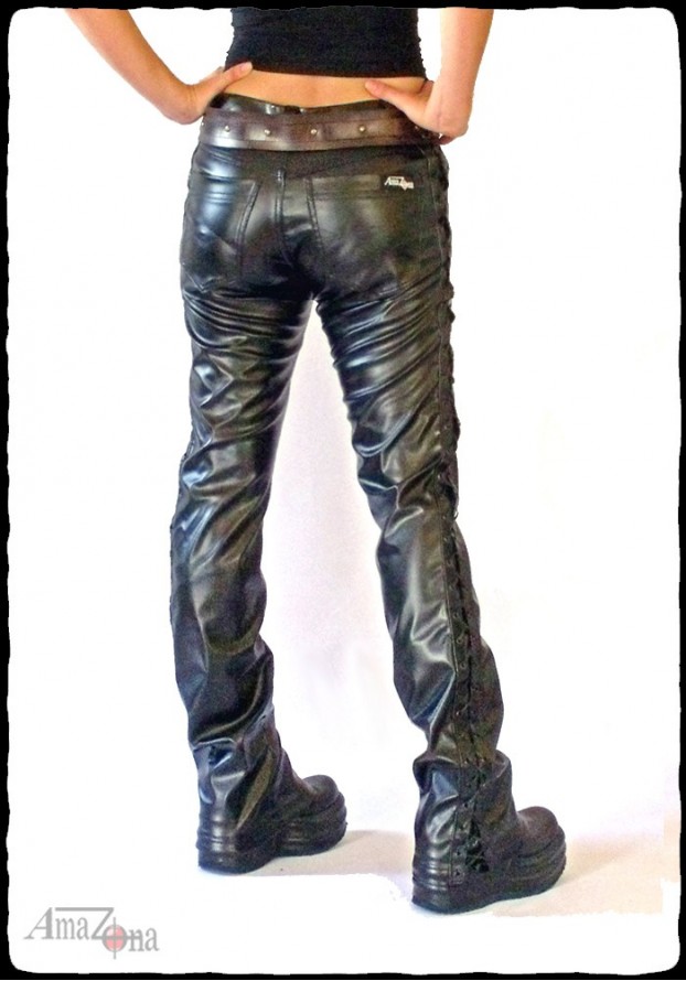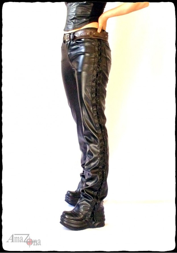 Laced women's faux leather pants