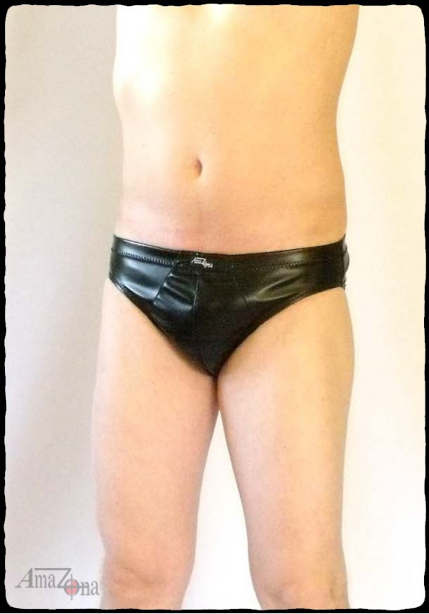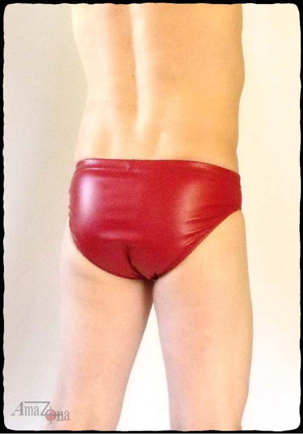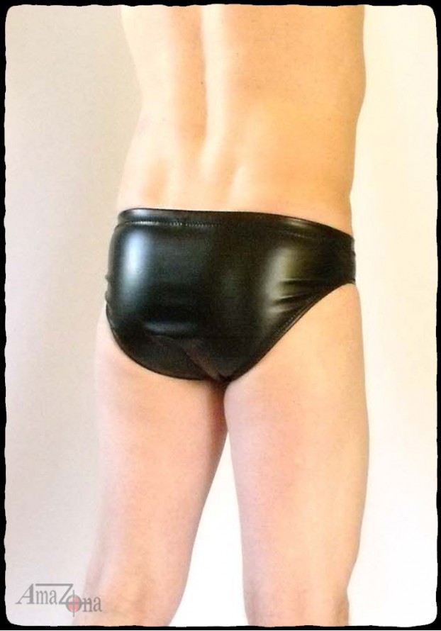 Stretch leatherette men's shorts. Top quality thin stretch leather material. Optional with crotch zip.
