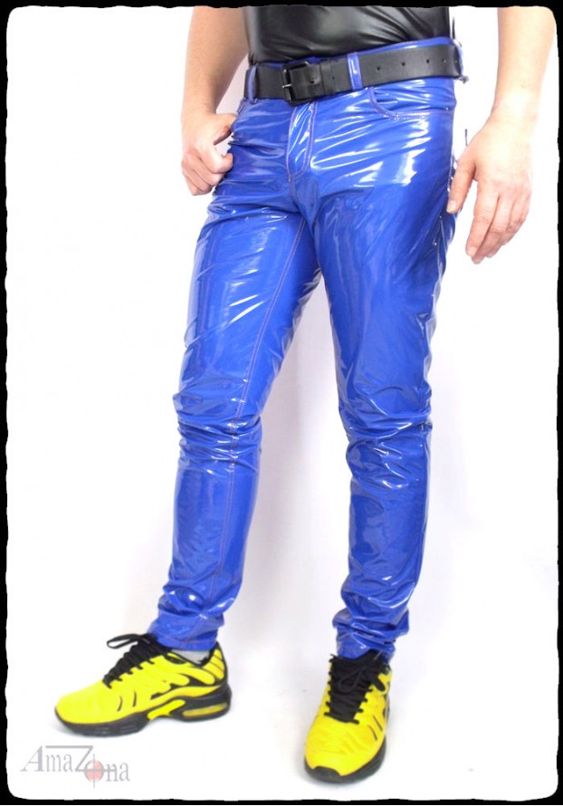 Férfi skinny jeans magas fényű, 4D-s – minden irányban elasztikus – lakk anyagból. Szűk fazonja szorosan követi a test vonalát, miközben kényelmes mozgást biztosít.