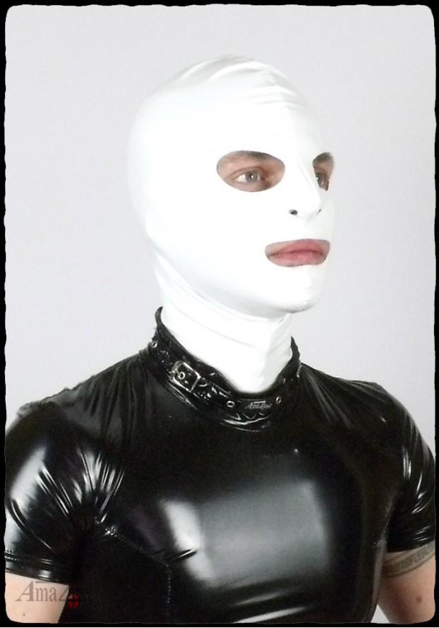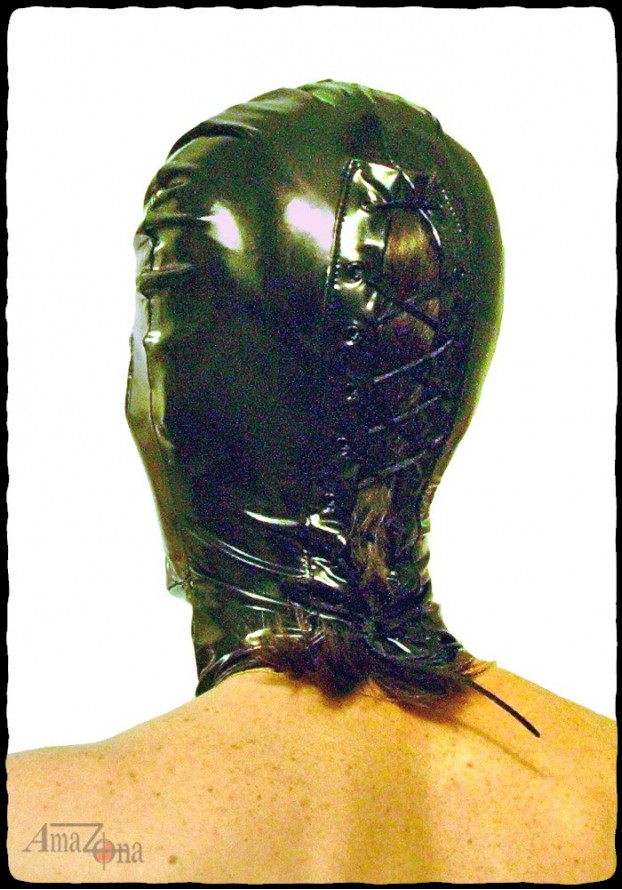 4D-s (minden irányban elasztikus) lakk maszk szem-, száj- és orrnyílással. Választható hátul cipzáros, vagy fűzős kivitelben.
