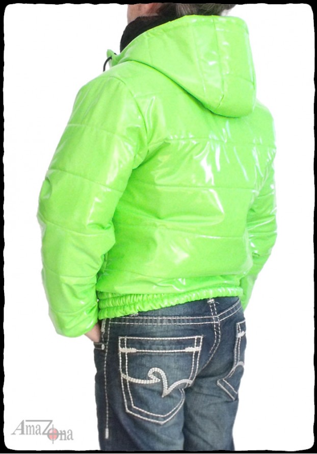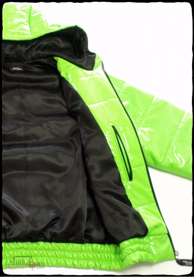 Rövid fazonú, fényes lakk pufi dzseki fix kapucnival, habkönnyű töltelékkel, hogy a legnagyobb hidegben is meleget biztosítson. Selyem béléssel készül, de választhatod lakk béléssel is.