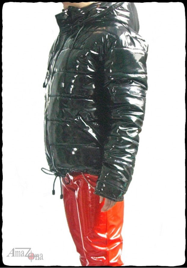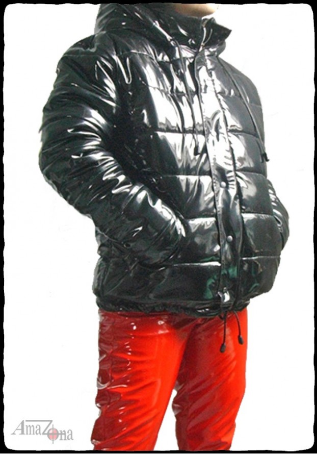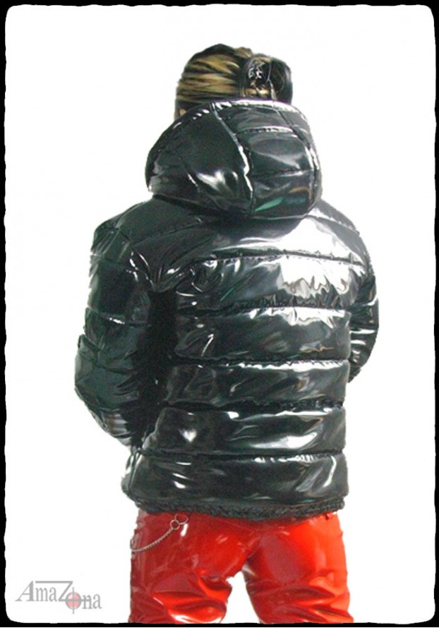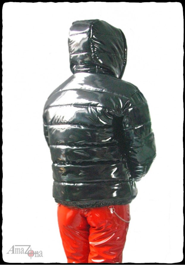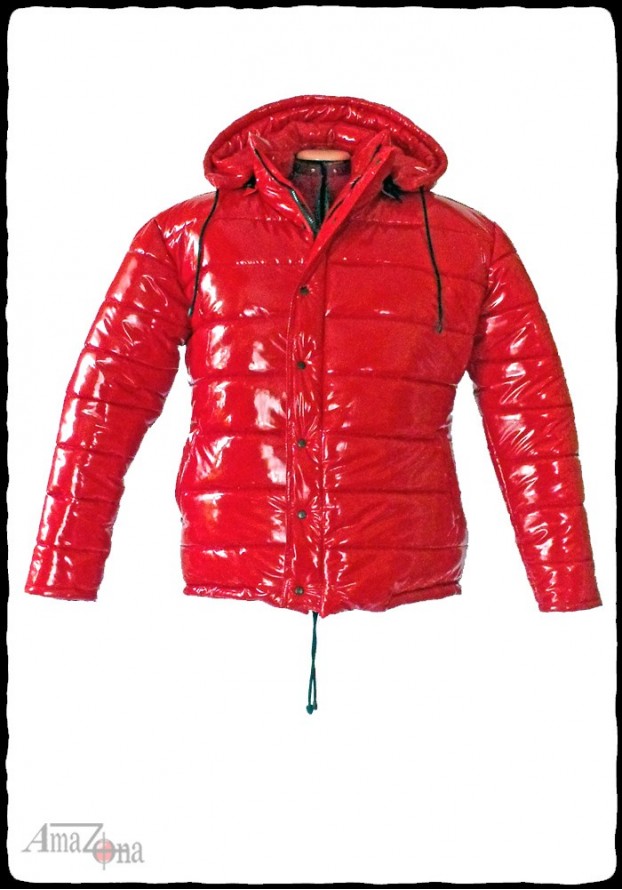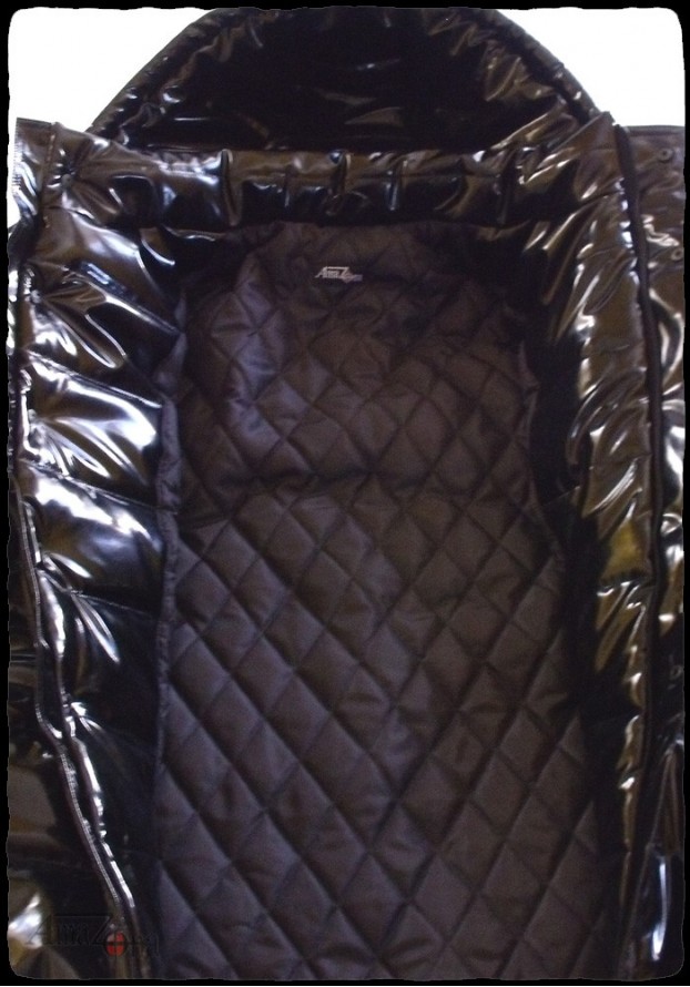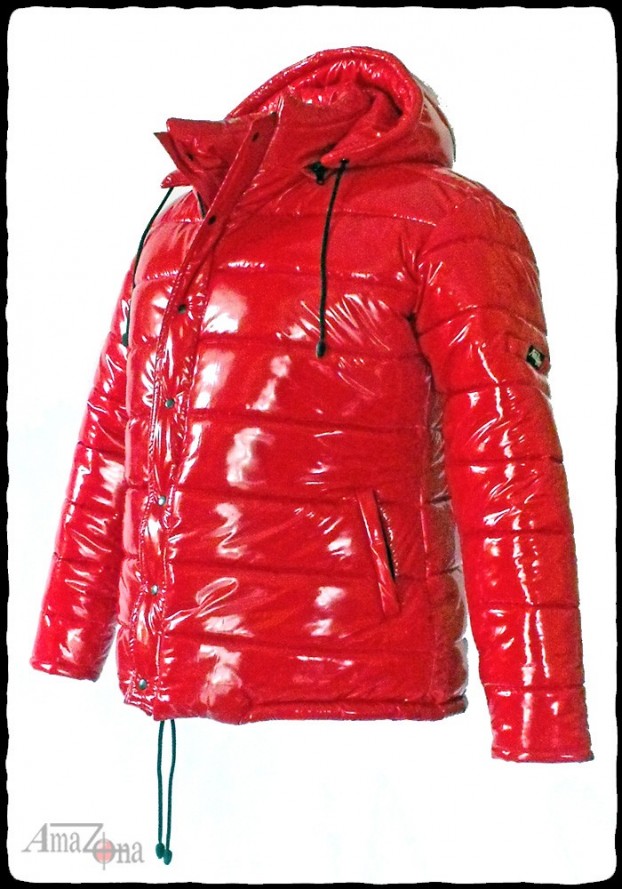 Fényes lakk pufi dzseki levehető kapucnival, vastag, habkönnyű töltelékkel, hogy a legnagyobb hidegben is extra meleget biztosítson. Steppelt selyem béléssel készül, de rendelhető lakk belsővel is.