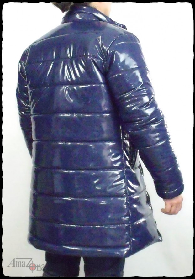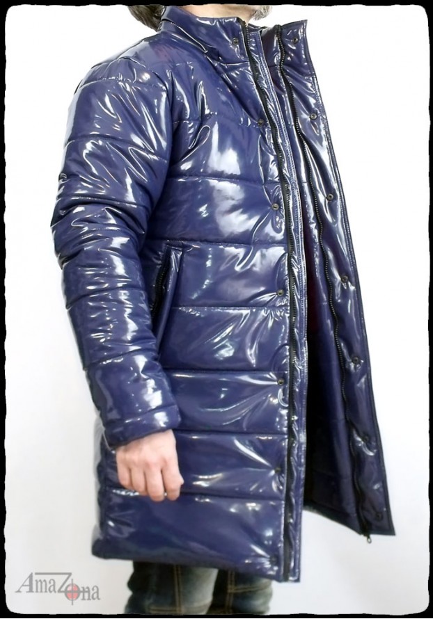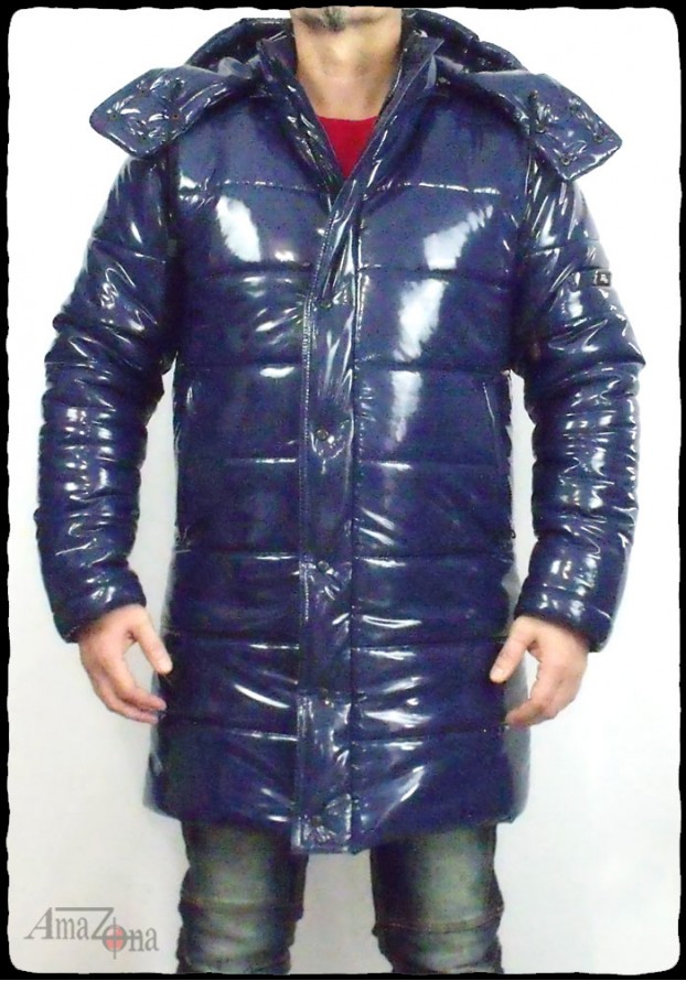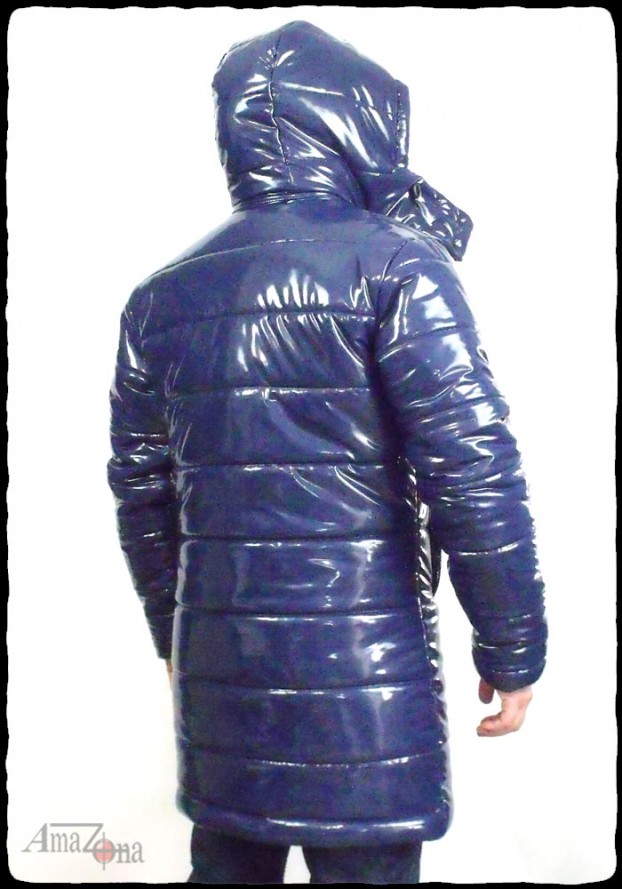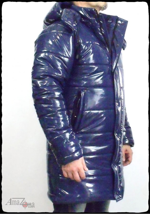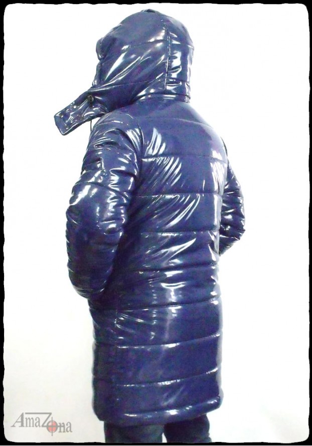 Fényes lakk pufi kabát, amely térdközépig ér, és levehető kapucnival rendelkezik. A kabát vastag, de könnyű töltelékkel készült, hogy a legzordabb téli időben is extra meleget nyújtson. A belseje steppelt selyemmel bélelt, de választhatod lakkbéléssel is.